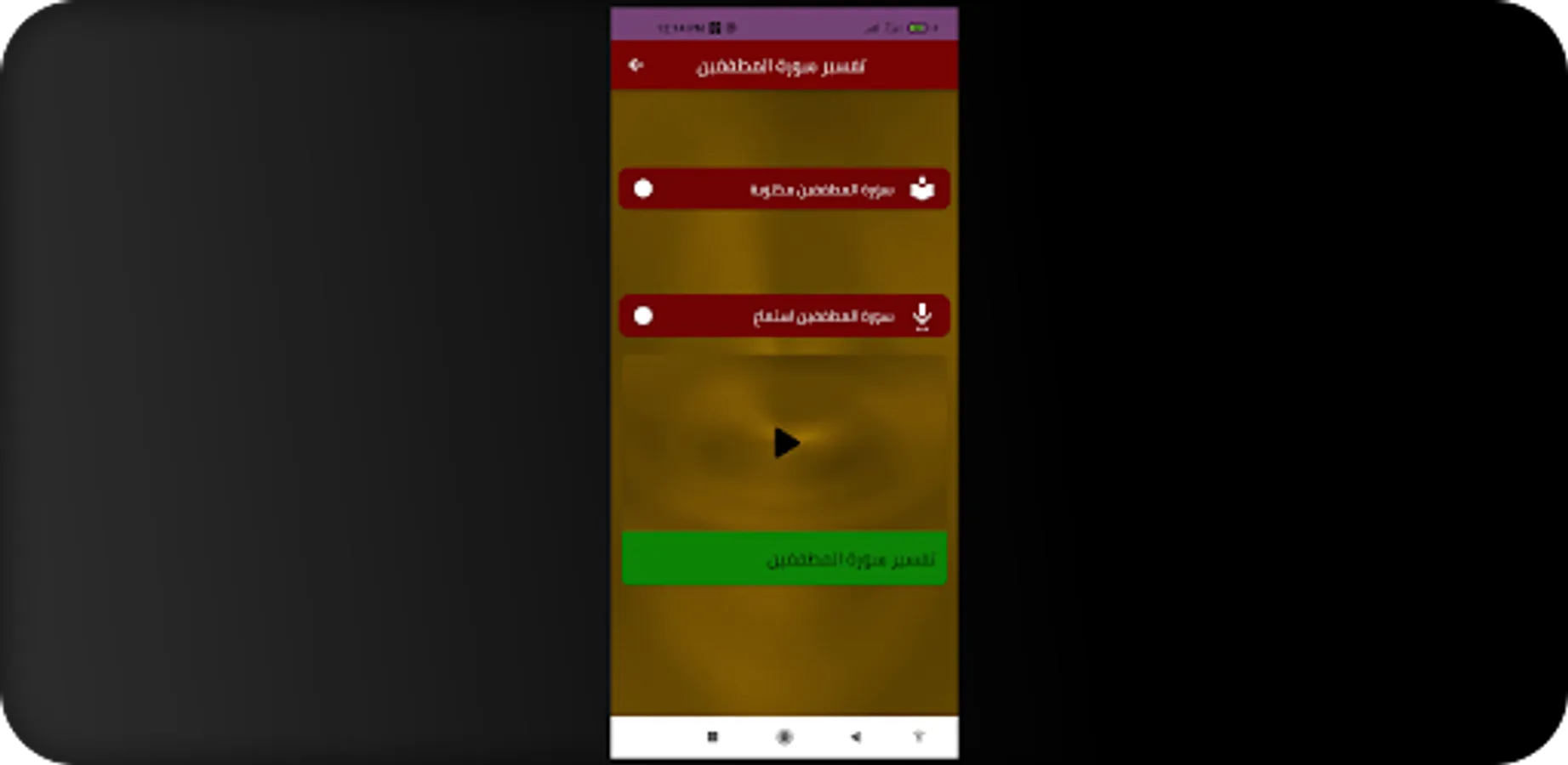 يمكنك التنقل بين أزرار تطبيق تفسير سورة المطففين بسهولة