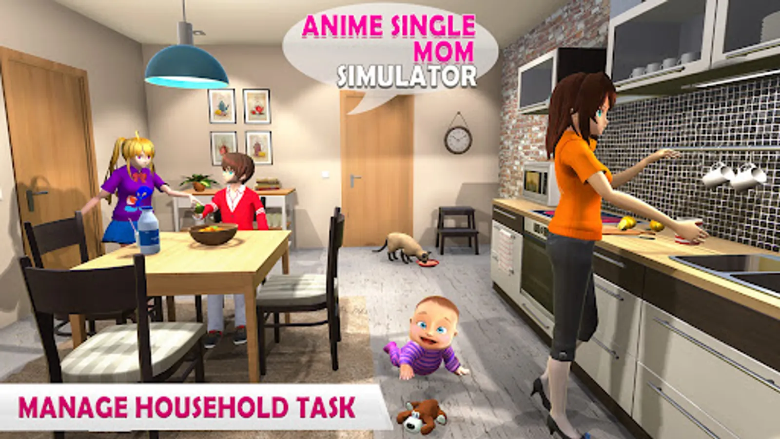 Welcome to anime single mom games and play the role of a single parent sim. As an anime single mom, become an expert in taking care of the family while performing housekeeping activities and chores in working mom games. Begin your day by waking up, and prepare breakfast for the anime family games. Go to a nearby market in the absence of virtual dad games for grocery shopping in family simulator. Change into apron and carry out the rest of the house chores in the virtual mom simulator games.