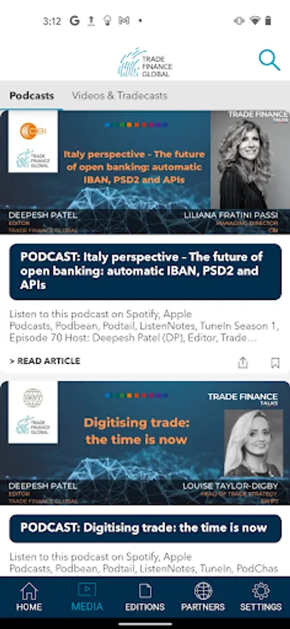 Get breaking stories, a selection of our favourite podcasts, new videos, research, educational guides and our beloved Trade Finance Talks magazine. Trade finance on the go, 24/7, free.