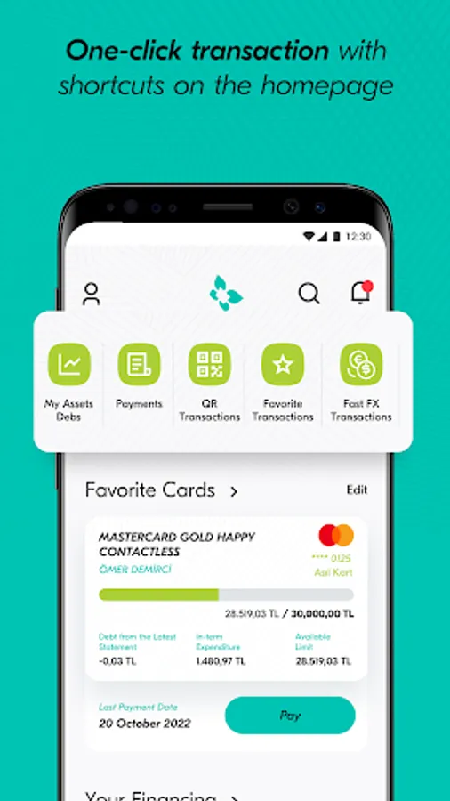 You can instantly benefit from all our banking products and services via your tablet and smartphone in Turkish, English and Arabic.