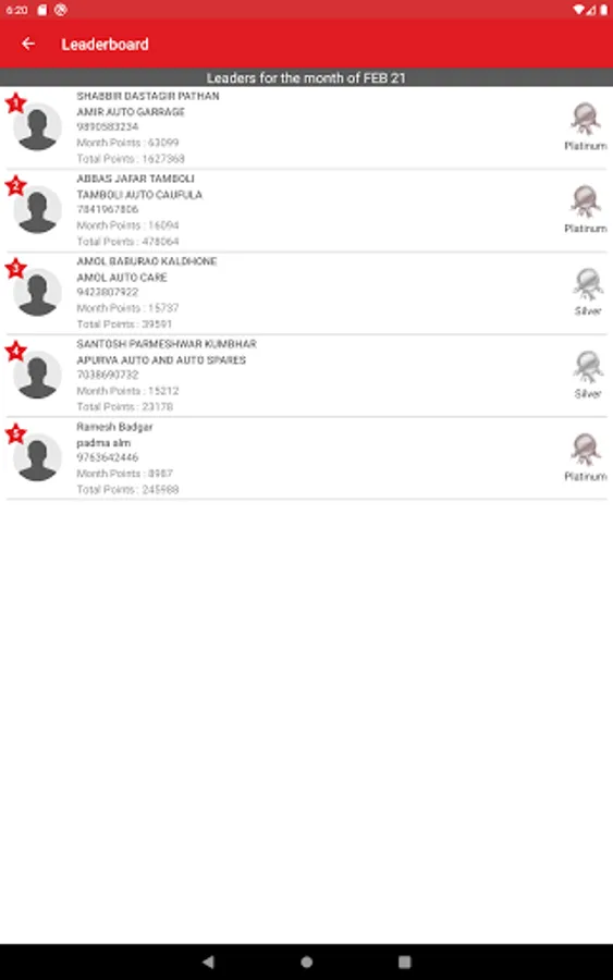 6. AH Profile: AHE can see technicians profile and performance of last 6 months.