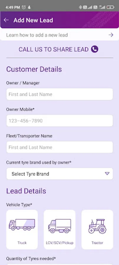 - Share lead details