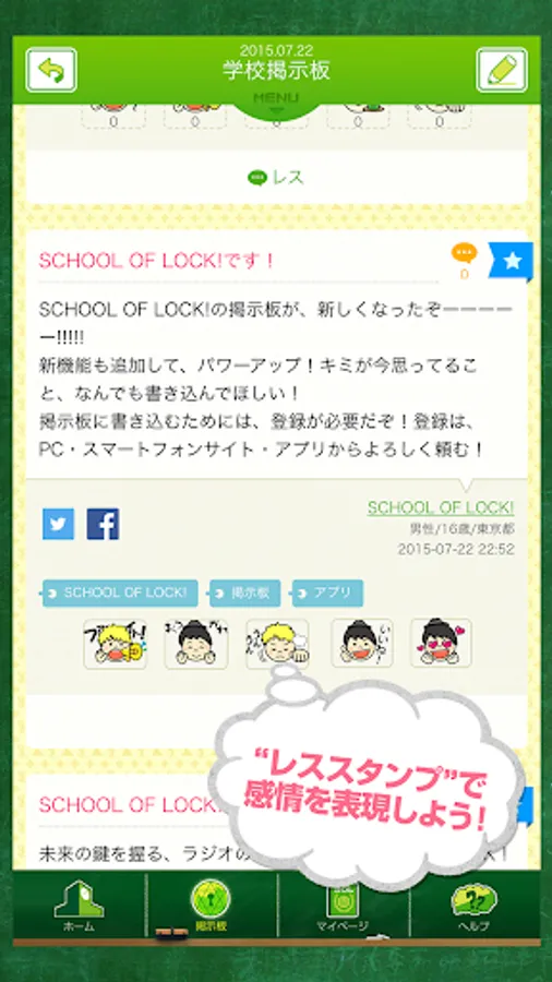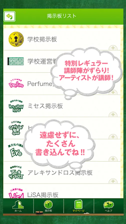 Super popular artists appear one after another every day. Launch the app and go to the school bulletin board & each artist bulletin board first!
