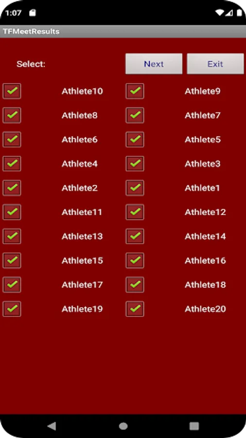 TFMeetResults application (Part of TF Series) uses supplied event meet input to facilitate remote recording and forwarding of field event results. Measured value, O, X, or – are used to indicate results of athlete efforts. It can be used as a Personal Training aid.
