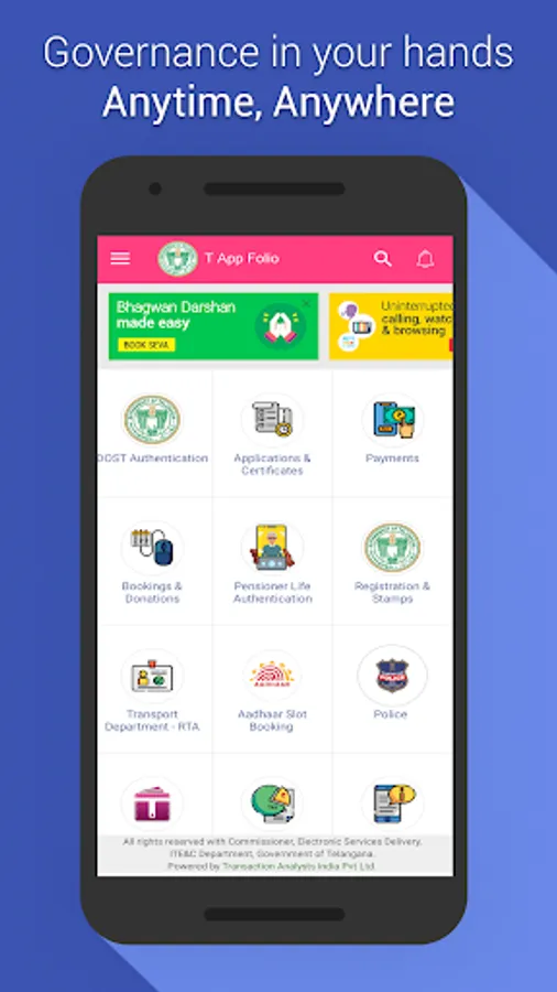 T App is available as an Anytime, Anywhere mobile service delivery gateway for all Government Departments.