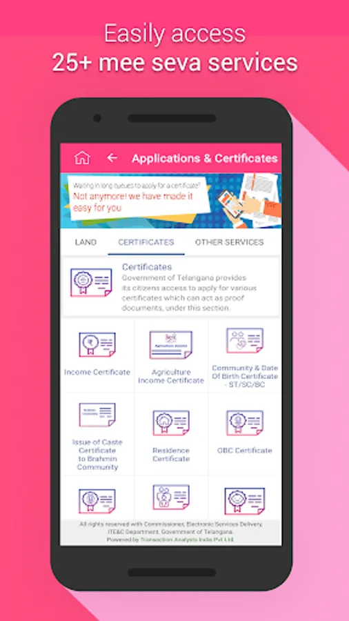 4. Govt Issued Certificates – Ease of application and receiving certificates like Income, Birth, Death Certificate etc