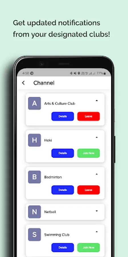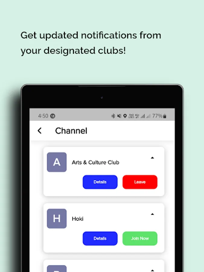 Get updated notifications from your designated clubs! You can join channels to receive specific announcement just for you. Channels will be created by the student councils for them to post specific events and announcements for specific group of students.