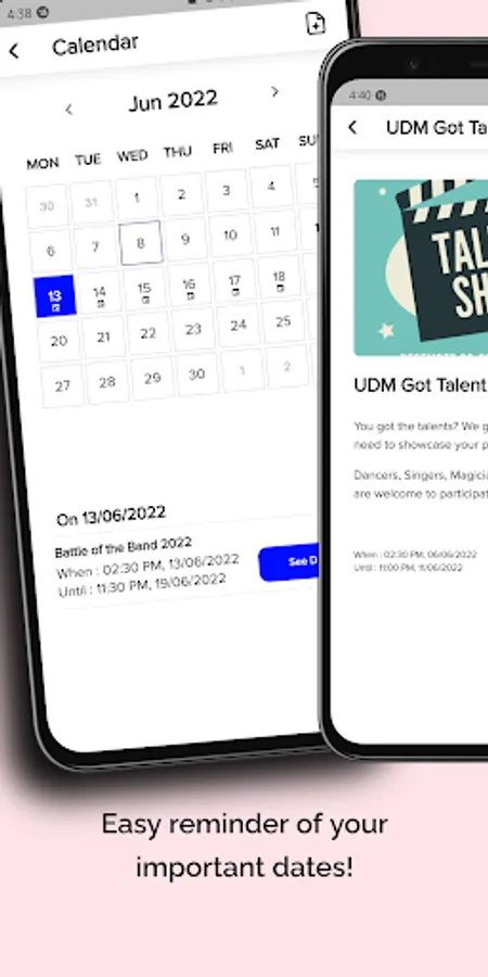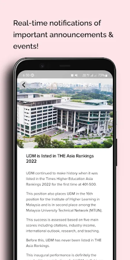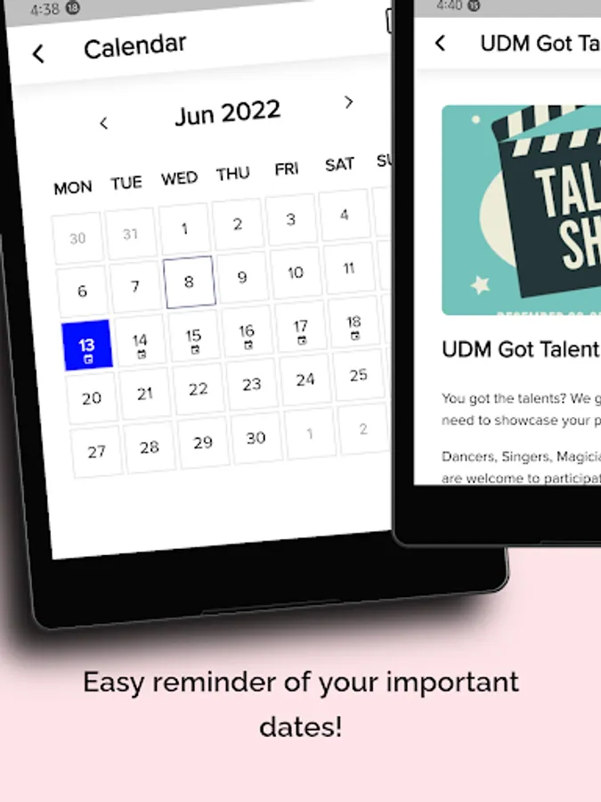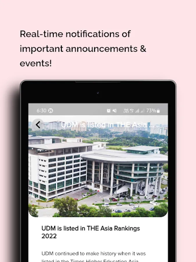Real-time notifications of important announcements & events! Announcements will allow you to receive information or any important announcements made by your student council. You can also keep track of all the announcements in the notification bar for past notifications.