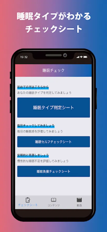 Use 3 types of check sheets to determine your own sleep type, daily sleep feeling, and chronic sleep deprivation.