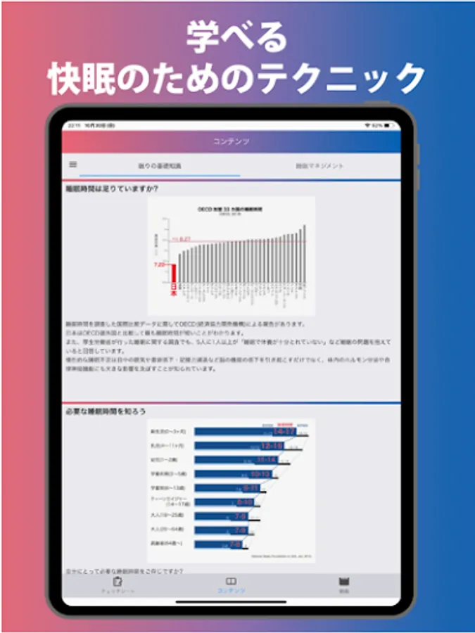 Three self-check sheets help you become aware of your own sleep, and a wealth of content supervised by experts provides tips for improving your sleep habits.