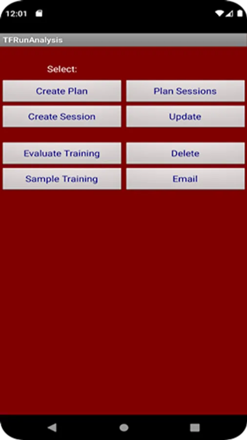 Training Plans are created using Create Plan Menu. Training Sessions associated with a specific training plan can then be created from generated data using Plan Session(s) Menu.