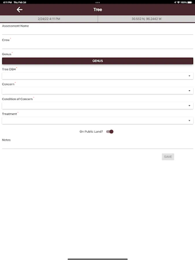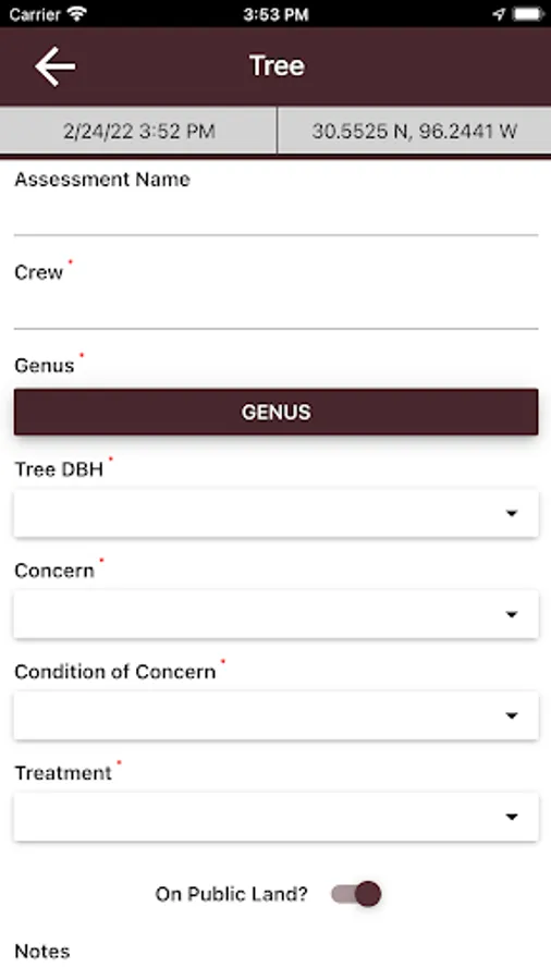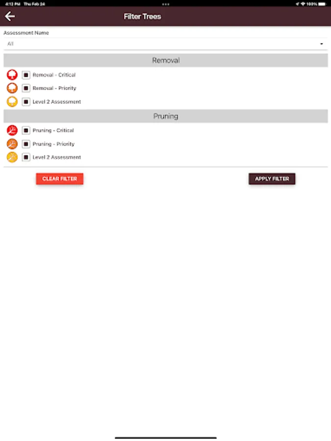 The Level 1 Tree Risk Assessment app helps perform a limited visual tree assessment. It maps those trees with obvious defects that have a Probable or Imminent likelihood of failure and identifies treatment. Designed for pre-and post-storm use this app can store tree assessments locally, export them via email or can be connected to ArcGIS Online.