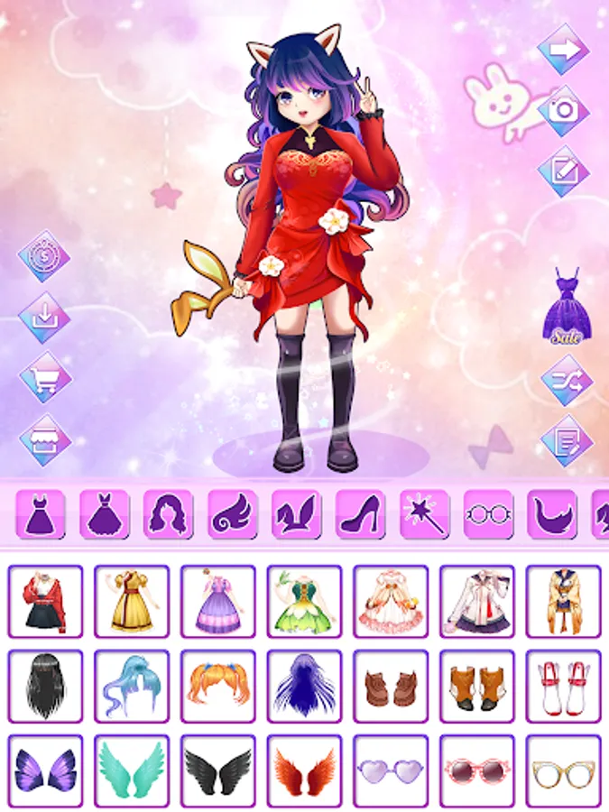 Makeover Anime Doll Dress up Girl Games in Cute Anime Avatar! For all fashionistas and virtual doll Anime Girl Dress up fans here is the ultimate makeover app with tons and tons of clothes to rummage through. In the world of Anime doll, you can have beautiful wardrobes, cute rooms, stylish makeup, gorgeous costumes, and you can also create your own fashion idol here! Come to the Anime Princess dress up wardrobe for the Anime Girl Games, try your match, design stylish hairstyles, decorate the cute background, put on the most beautiful makeup, remember to take a few beautiful photos of the Sweet Girl Games who is dressed up! ๐