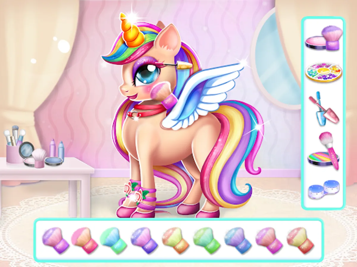 It’s time to own fashion challenge! little Pony Makeup Games is all you need in Magical Princess Unicorn Games. Make fantasy characters in Girls Game Baby Unicorn Dress Up, Hi, Baby unicorn makeover artist. Let’s start virtual pet adventure show off your fashion stylist talent to your friends or use Anime avatar maker kawaii unicorn Now it’s time to select a charming dress up in this pony princess unicorn salon games.