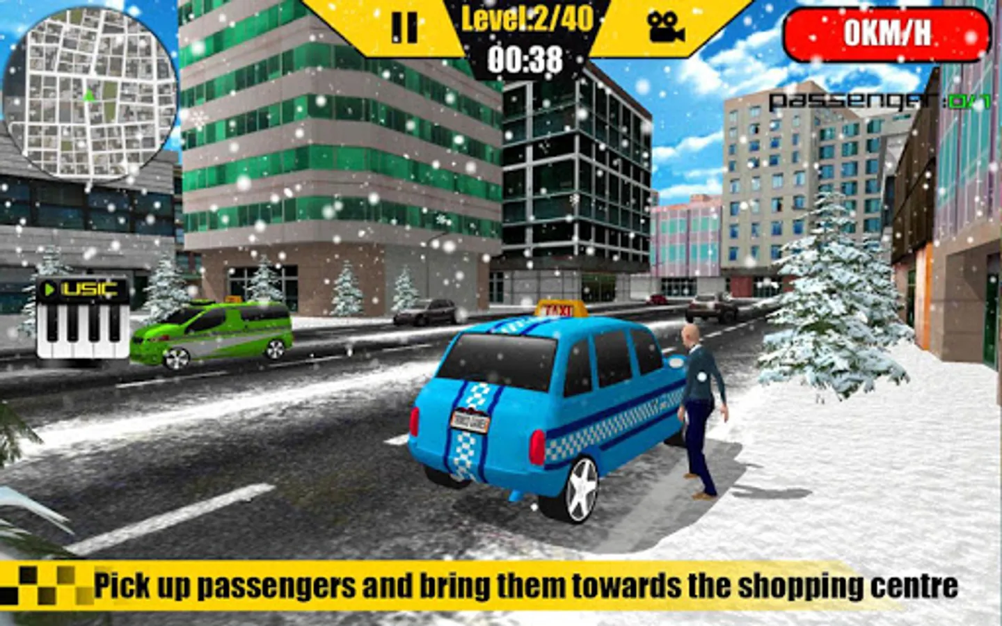 The citizens are spending lots of money on this holiday, but you can spend your hard earned cash to build an collection of awesome taxi cabs, upgrade and customize your taxi cabs with different colours in our taxi driving simulator! While you race your taxi on the snowy roads you can choose your favourite song to listen on the radio. Race your passengers to the city shopping mall in our taxi driving simulator!