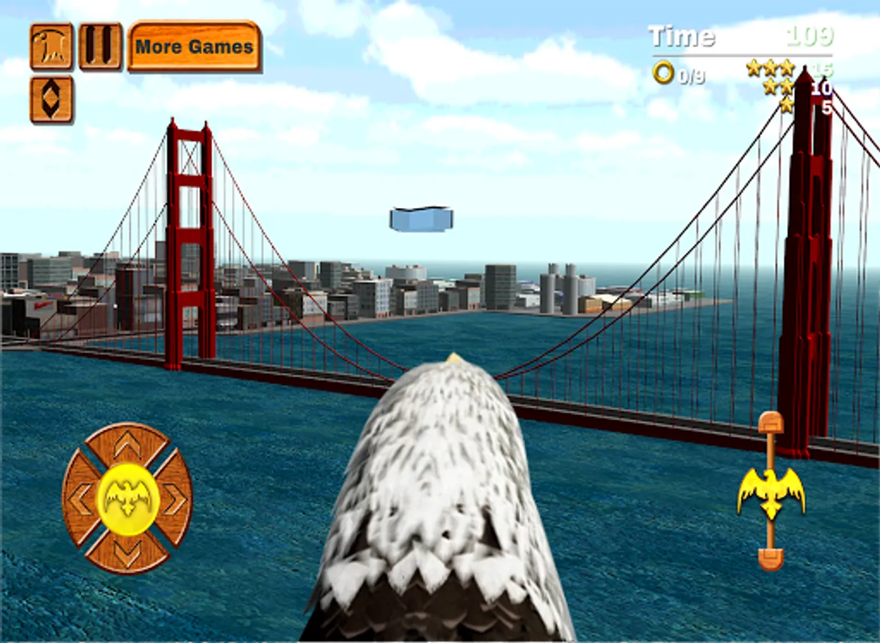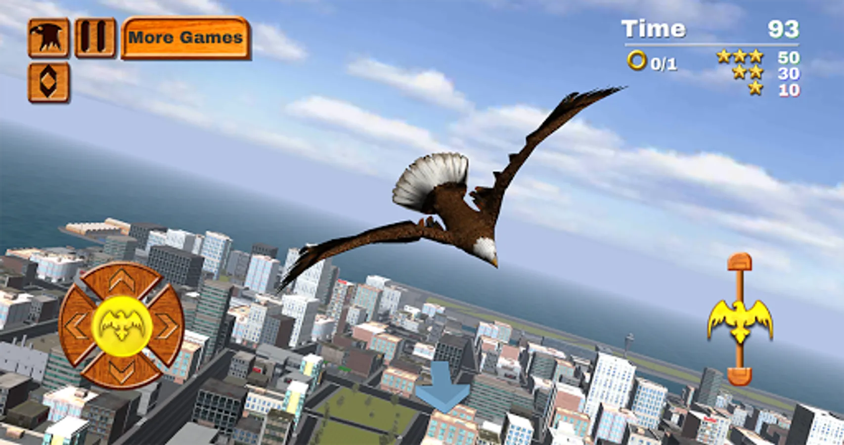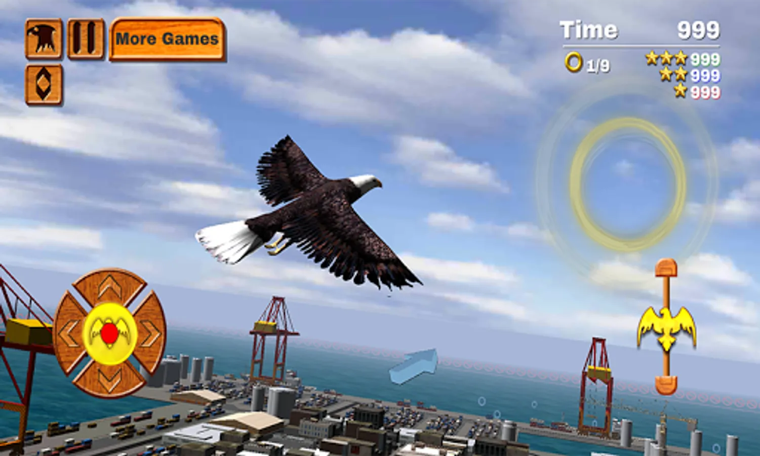 Fly like an eagle between the big city traffic! Be a real eagle and spread your wings before taking flight. These wings are meant for flying. Take flight in a beautiful big city 3d and get ready for some amazing bird flight missions.