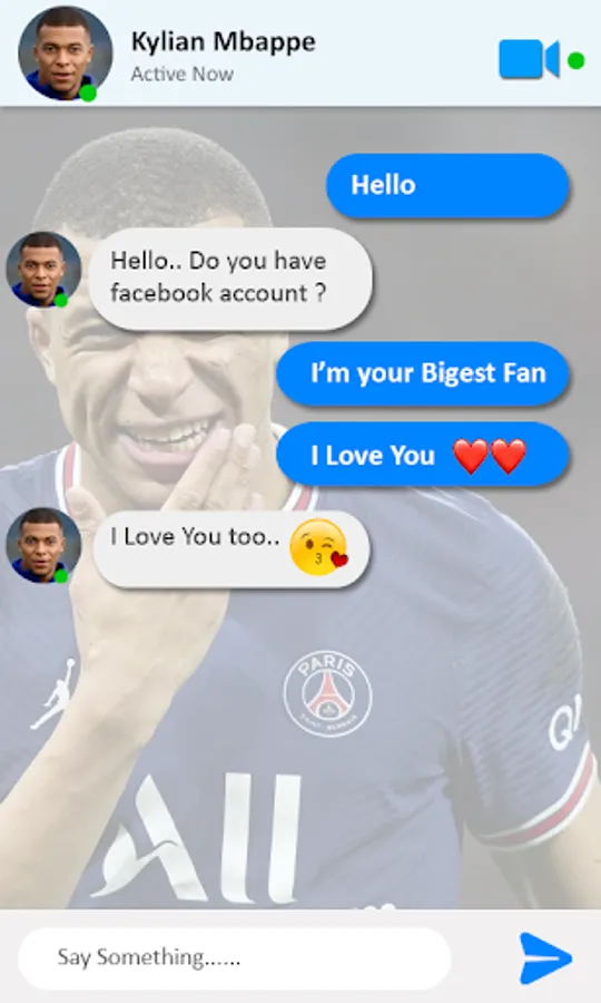 A mobile app to perform fake chat and video call with Mbappe. We added a lot of fake messages for users able to make a fake chat and fake video call with Mbappe. Download it now!