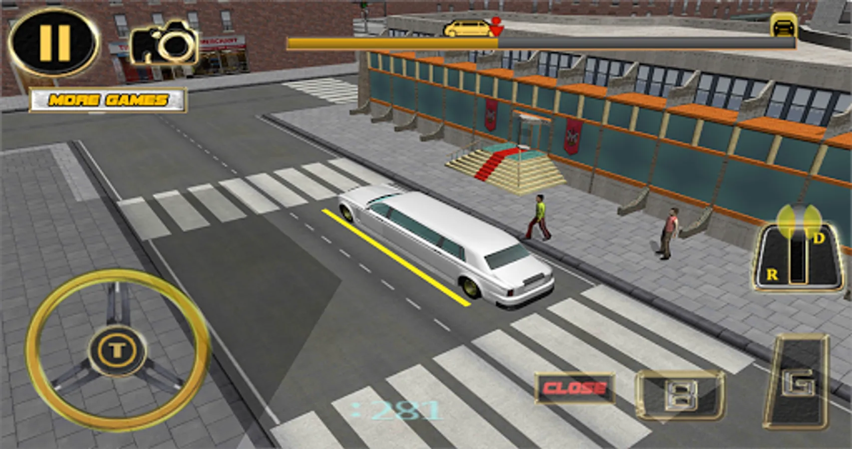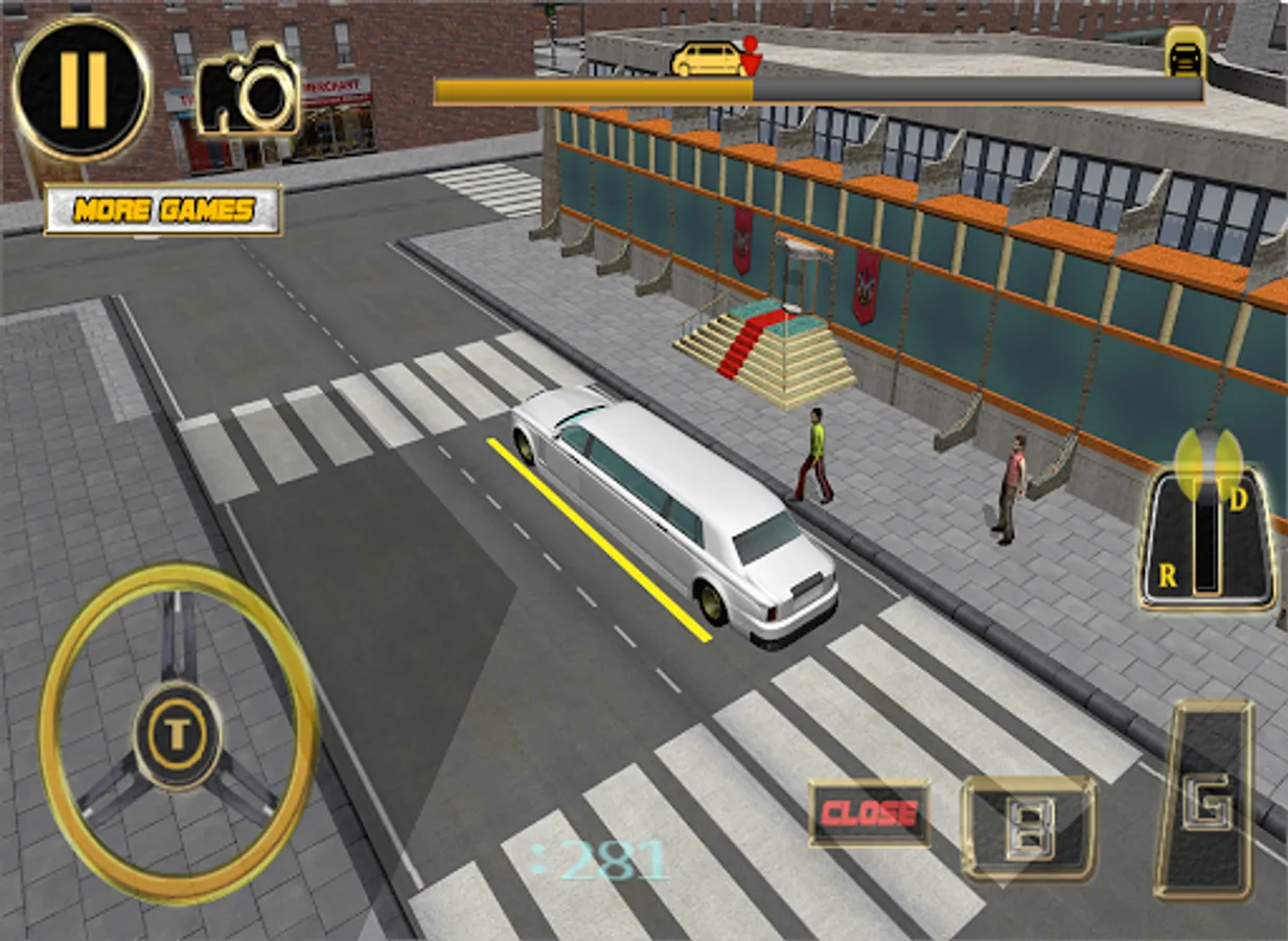 - different parking challenges to park the limo in this driver simulator