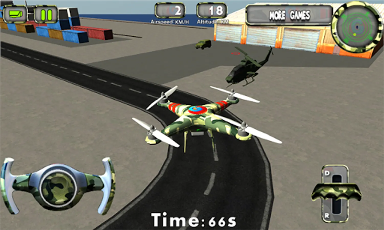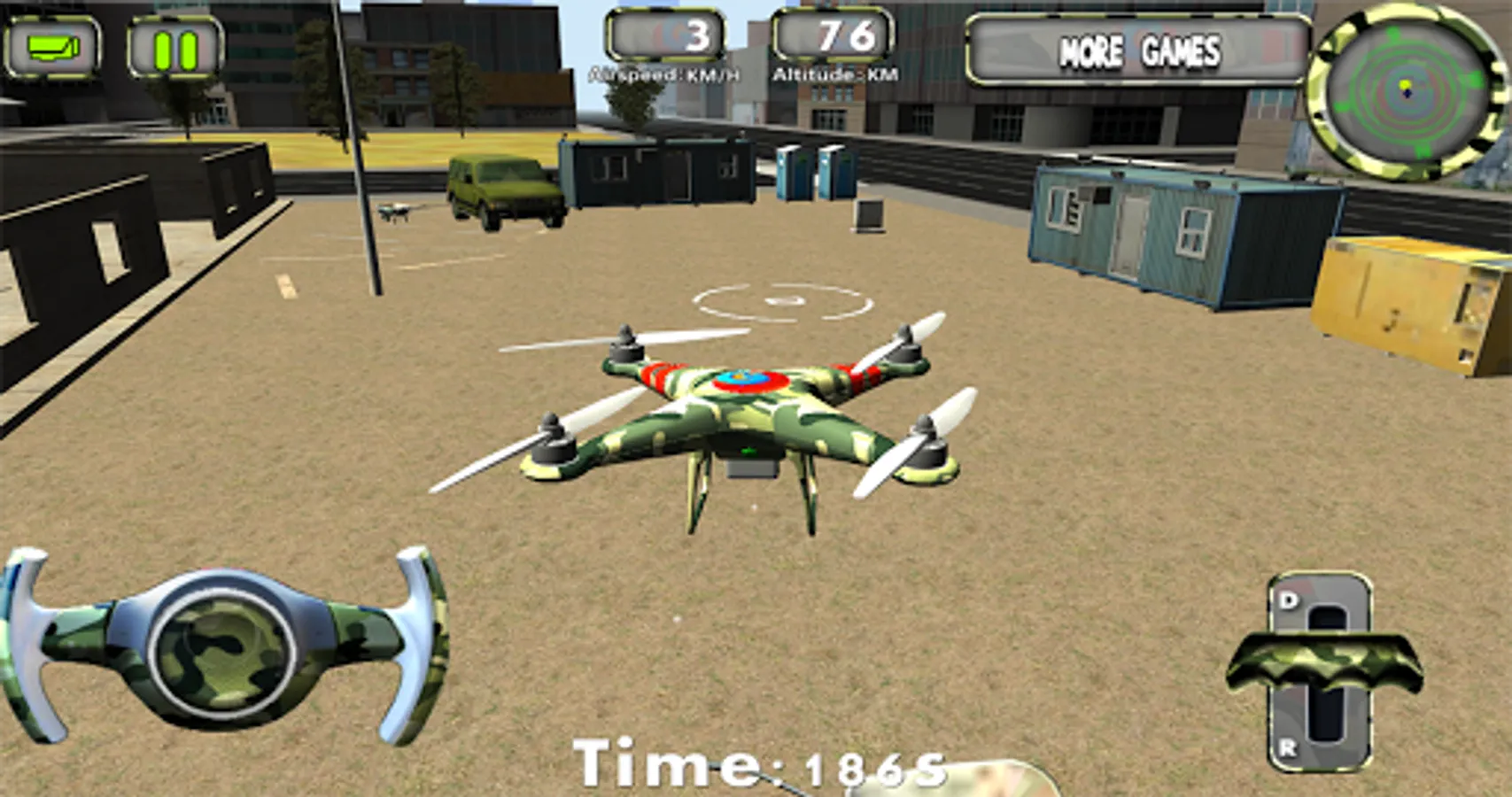 This drone flight simulator has many cool and challenging different game levels that will keep you entertained for many hours. The different game levels will learn you how to perform a PERFECT uav army drone landing and also how to perform a PERFECT uav army drone take off. In these military drone games the gameplay will get a little bit more challenging after you completed the previous level. The more levels you finish the more challenging these military drone game levels will become. Do you have the skills to complete all army drone game levels?