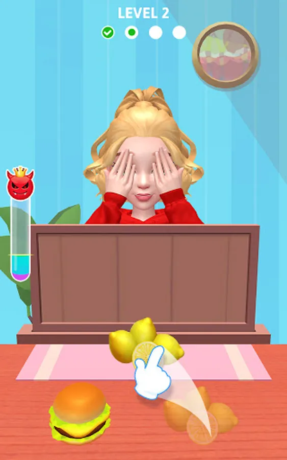 You're on a date with a blindfolded girl, who patiently waits for your food surprise! You're going to pick delicious and disgusting dishes for her to try out and she will randomly choose one to it! You'll be the winner if she eats enough disgusting food or misses delicious food.