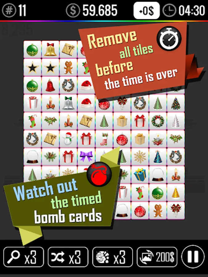 * BOMB card: depending on the level, there will be random bombs on any image on the screen. Defuse the bomb before the countdown, you will receive a bonus.