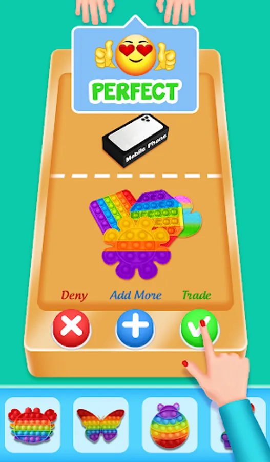 Throw your toys onto a table and see what your opponent possesses to provide. is that the deal worth it? Accept the fidget trade to lock the deal or demand more items—it’s up to you!