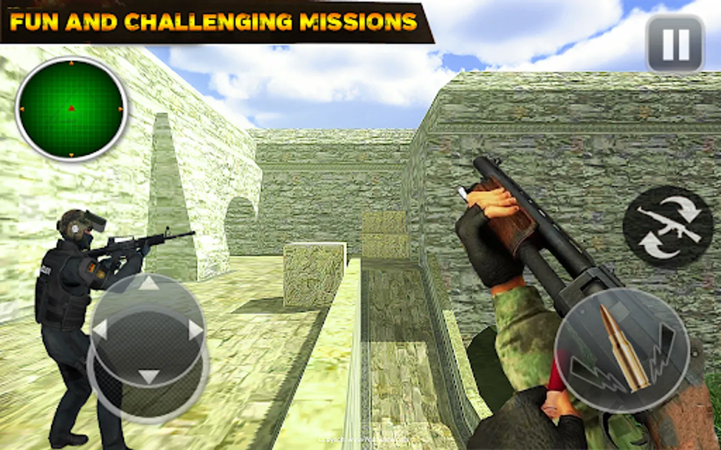 In this commando advanture shooting game, you must use your shooting skill to survive against terrorists enemies to all the levels of this shooting game. Incentives as a reward will be awarded after each level ends in this offline shooting game. Those incentives will be used to buy more weapons in this exciting gun games. Plan for your strategies against enemy terrorists to survive in shooting game. Number of enemies soldiers increase as the levels progresses so do their skills, so play smartly in this offline shooting game. You will provide with modern smg as a first weapon to start you fps game. You can also buy shotgun weapon to complete shotgun missions. All the weapons are available to use in this shooting game. In this gun games levels are designed such a way to increase your interest in free offline shooting games. Estimate your weapon skills before engaging with counter terrorists enemies in this best gun game.