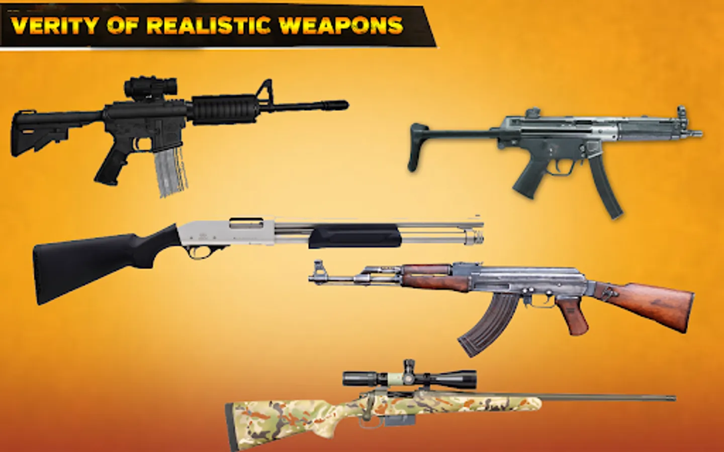 • Verity of realistic Modern Weapons