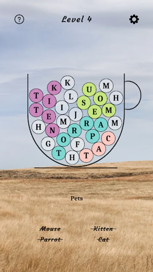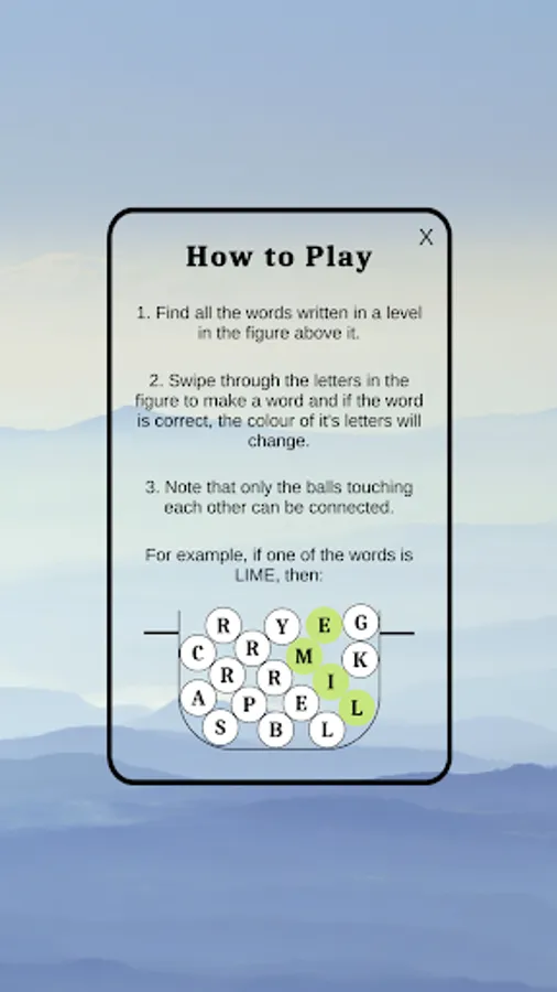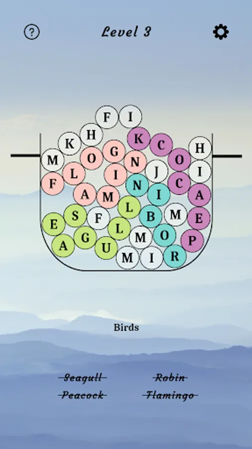 2. Swipe through the letters in the figure to make a word and if the word is correct, the colour of it's letters will change.