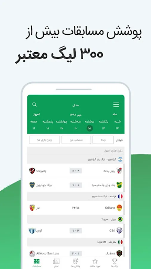 * Immediate display of the Iranian Premier League and prestigious soccer league tables
