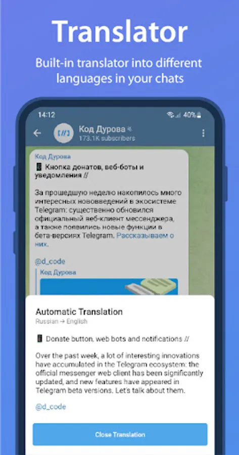 • Create secret chats that use E2EE encryption to maximize information protection from unauthorized access (copying and forwarding, including through screen screenshots);
