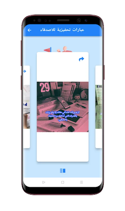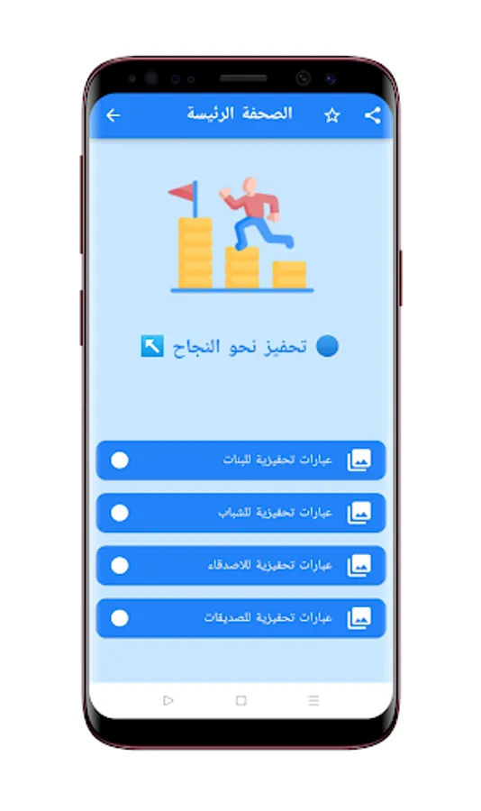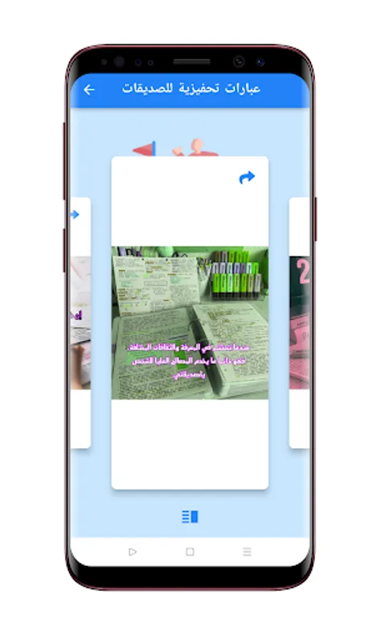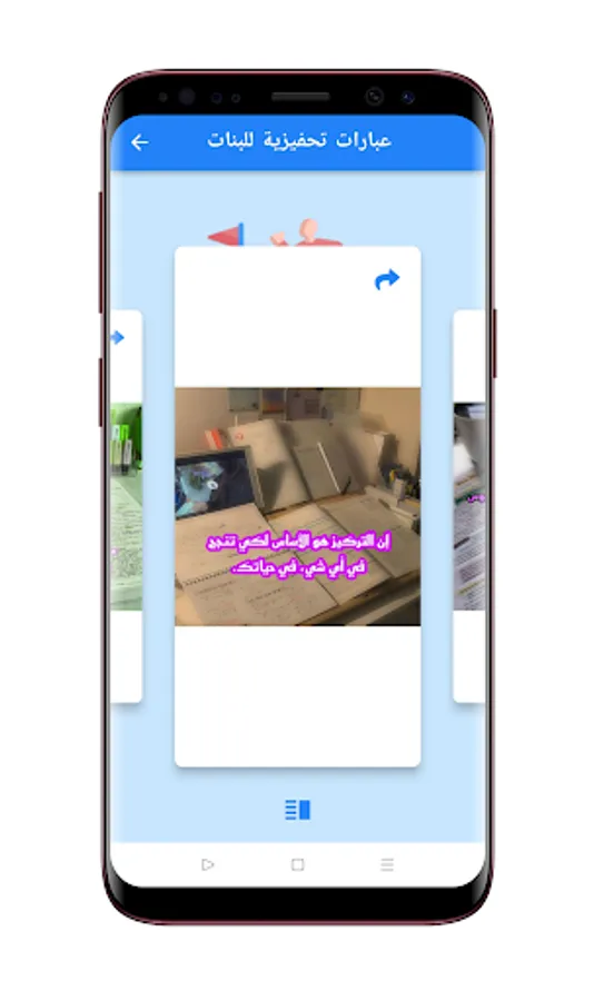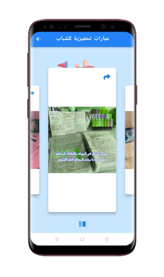 In the application of motivational phrases for study, you can share the images in the sections very easily