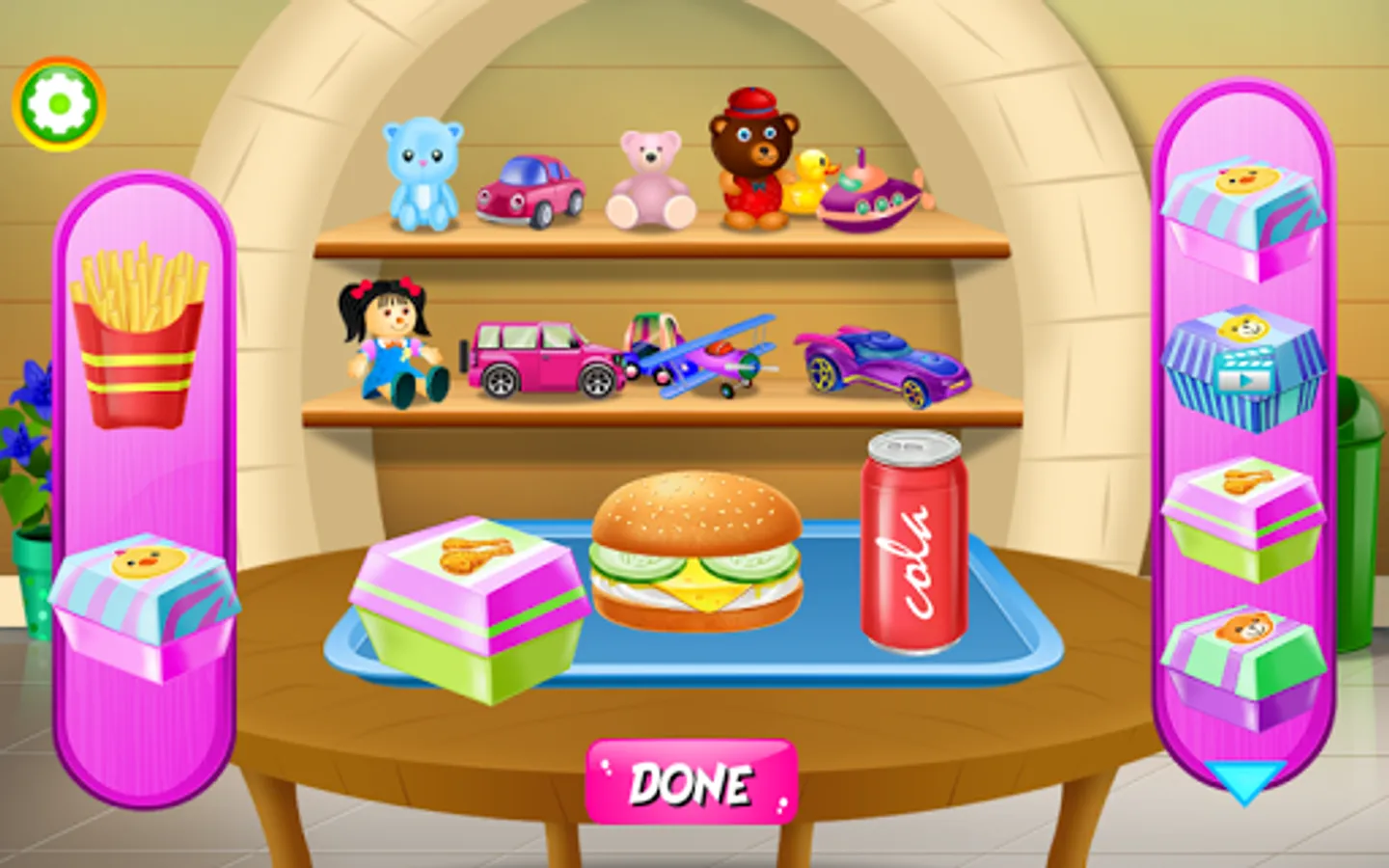 You can dress up yourself, bake a hamburger, decorate the burger, design the plate and pay out with the cash register. Be the manager of your own little burger restaurant.