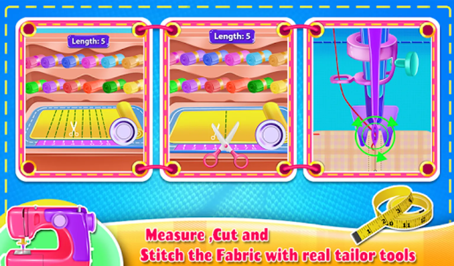 Shine as a little clothes maker by design and make your own outfits. Use original real tailor tools like a sewing machine, measuring tape and scissors to design amazing outfits in your boutique. Estimate the shape of the customer, sew fabrics into great clothing and wear beautiful dresses in the finishing photo shoot!