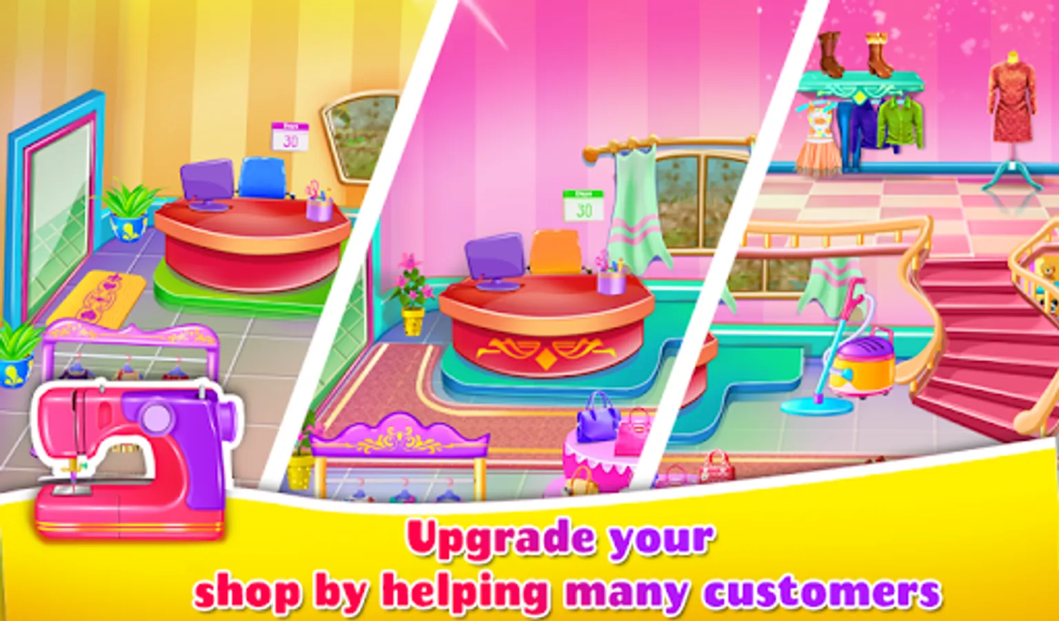 Choose the most colorful fabrics and turn it into wonderful bags, shoes, dresses and many more! Upgrade your shop to make even more beautiful products. You can decorate the clothing with different stitches and stickers. Satisfy all the customers in your clothes shop and take photos to finish it with a sparkling photo shoot!