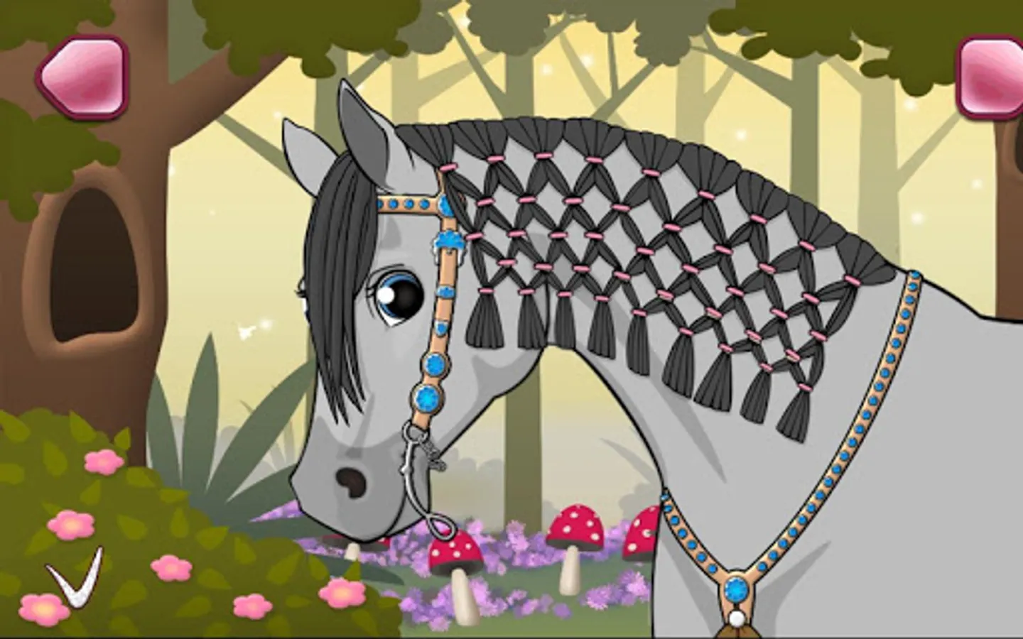In this game you can braid the mane of your horse of in different in hairstyles