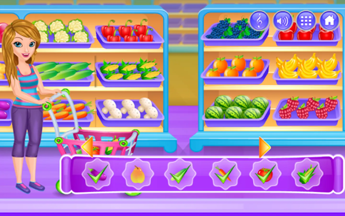 Besides that you can play as the customer and collect all the products like fruit & vegetables, camping gear, candy, cakes (birthday, valentine, happy new year) and many more. After you collect all the right products you can scan it as the cashier!