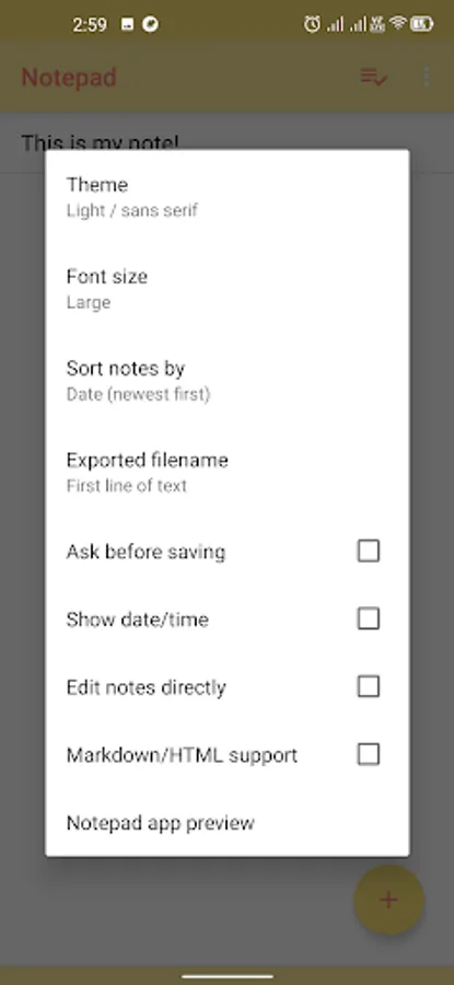 + Optionally create rich-text notes using Markdown or HTML (Android 5.0+)