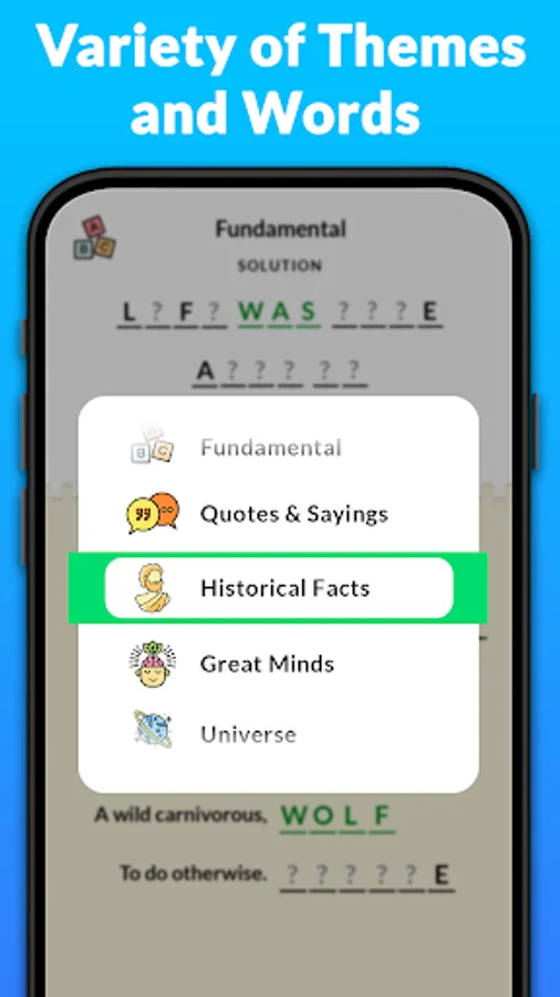 - Varieties of themes with different difficulty levels of logic word puzzles