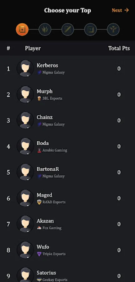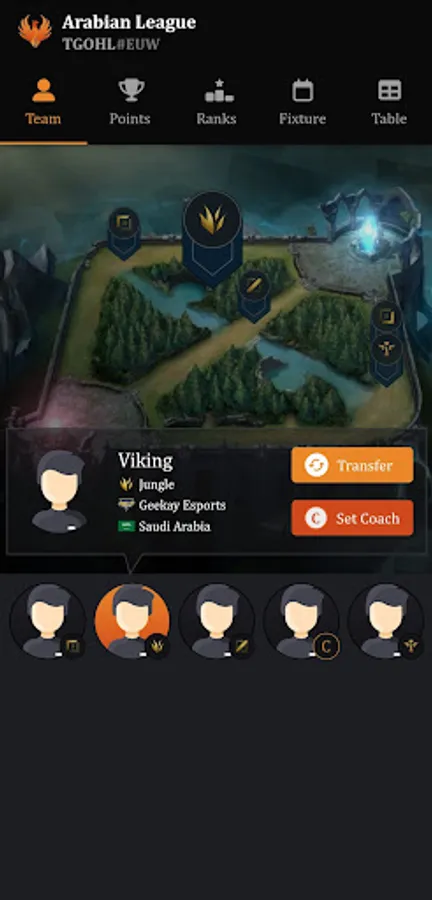 Select your 5 players for your team, pick your coach and gain points for your players performance.