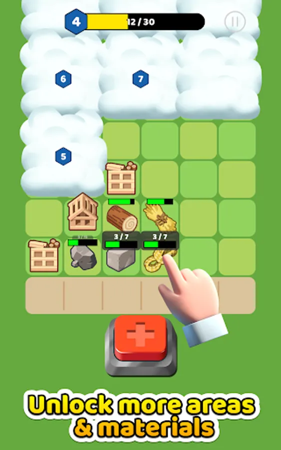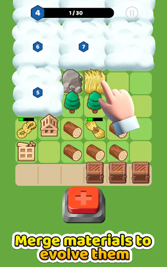Level up and unlock new areas of your map, which will also unlock new resources to collect and merge. The more resources you merge, the more advanced they become. It all culminates with a cute little building, complete with a worker to assist you in your quest to build an empire!