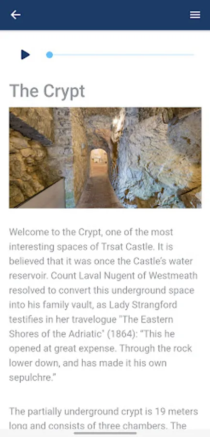 Explore the Trsat Castle beyond the Crypt. Twelve additional interpretation points adapted to your smartphones will introduce you to different locations of the Castle. Each interpretation point reveals a new layer of the Trsat Castle and in addition brings to you a special, not so well-known point of interest.