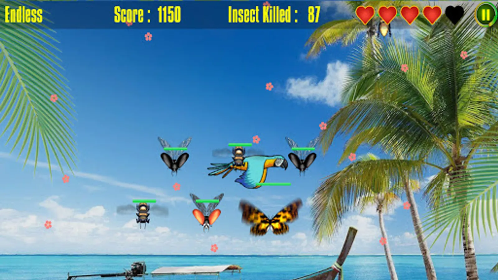- 2) Endless Mode: This is just as the name says it is endless and the goal is to smash as many insects as you can and get the highest score possible. How long you are able to survive and how high you score depends on your skills so start smashing those flying insects and help rid the earth from this infestation.