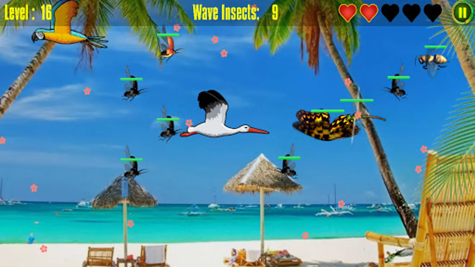 • Immersive bug smasher gaming action where you can collect hearts to restore lives