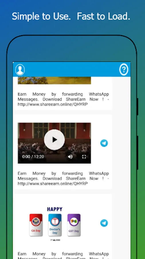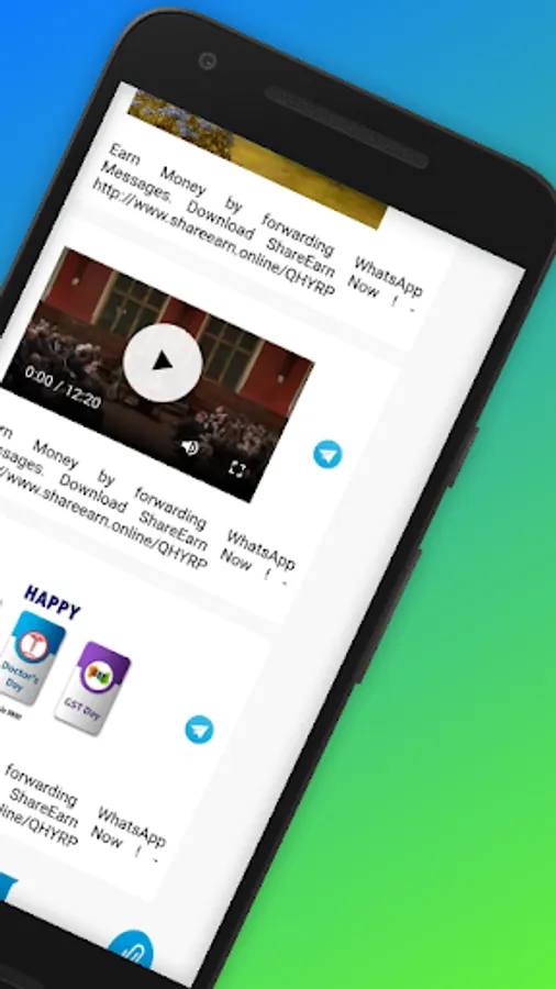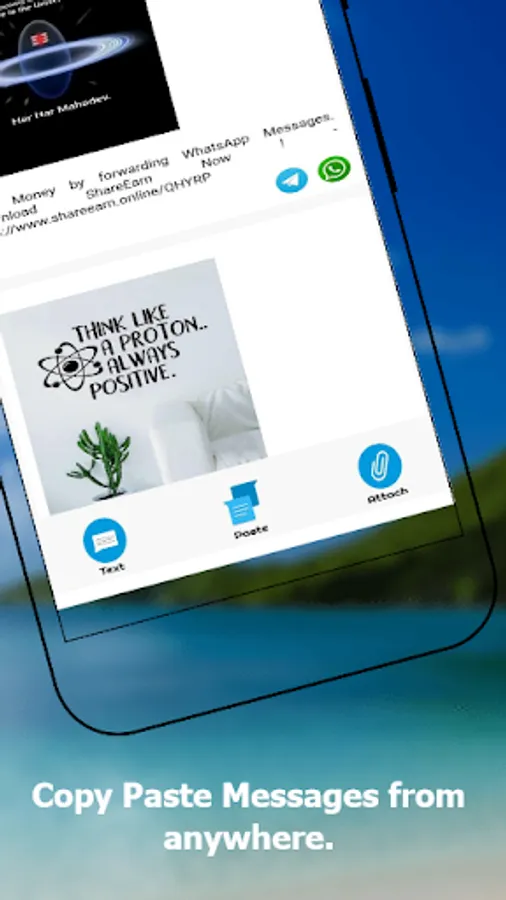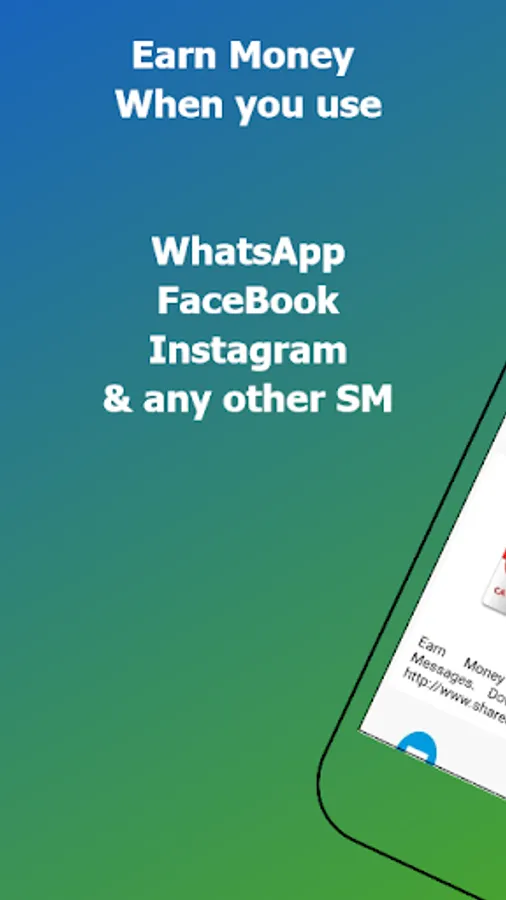 1. You receive any text message on Whatsapp -> copy/paste message to ShareEarn -> forward it to your contacts from ShareEarn -> $$ Earn Money $$$