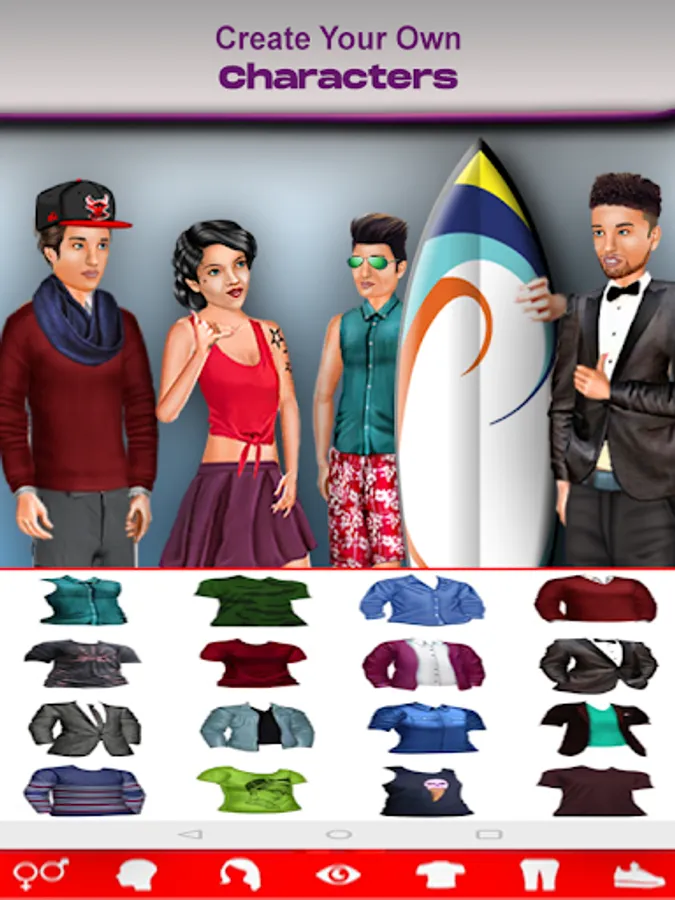 Show your story to the world, create Chapters & Scenes of Interactive Stories with various characters options, from young to old, family to friends, show locations where your story goes. Add Characters that express the true essence of your words.