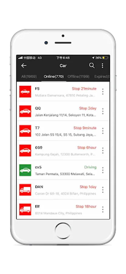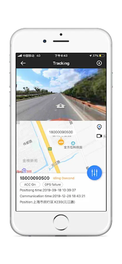 7. Position Tracking: Track live geographic location of vehicle via map street view.