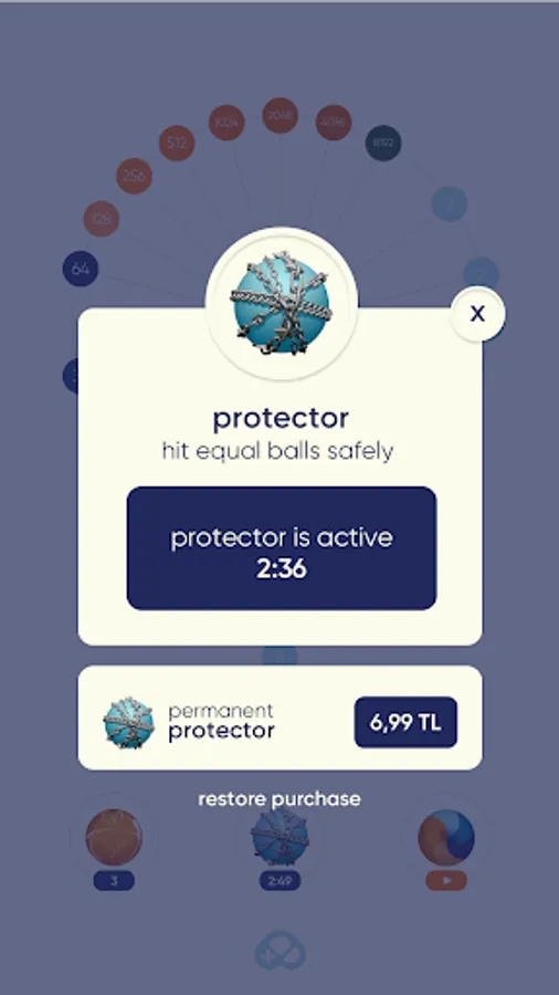 The ball that is hit to the opposite side starts to spin. Then, when a new ball is hit, they merge if it is the same number. The goal is to reach the highest possible score. If you are not using helper and hit the ball on the other ball, the game is over.