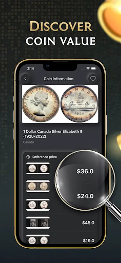 Just snap a picture of a coin with your phone camera and the app will show you a list of similar coins