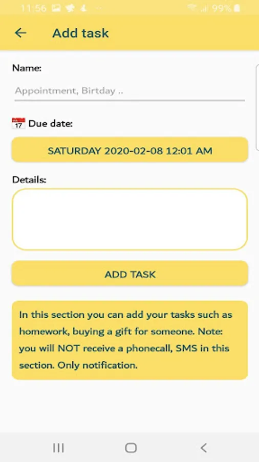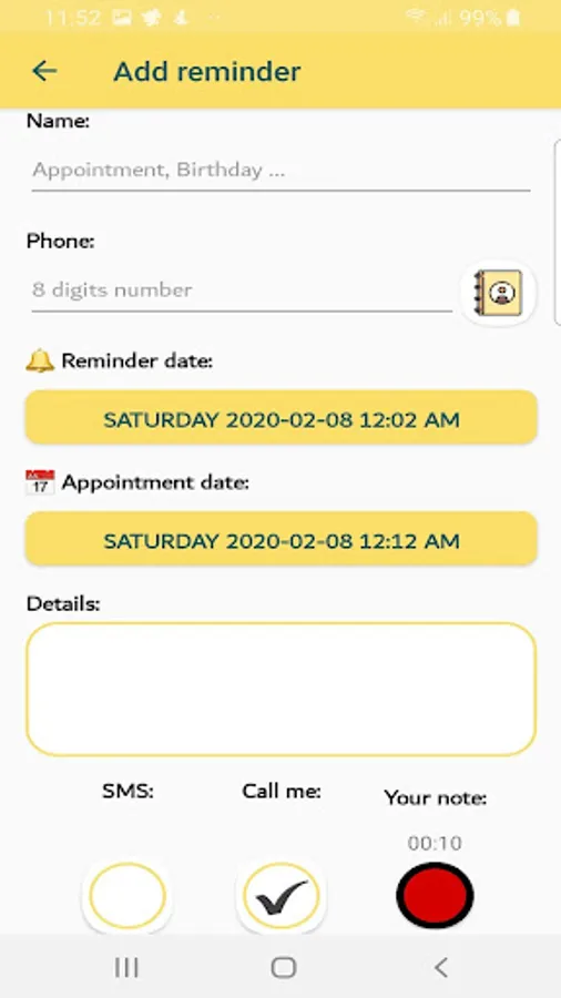 For any of your important appointments you can add reminders and we will call you to remind you.